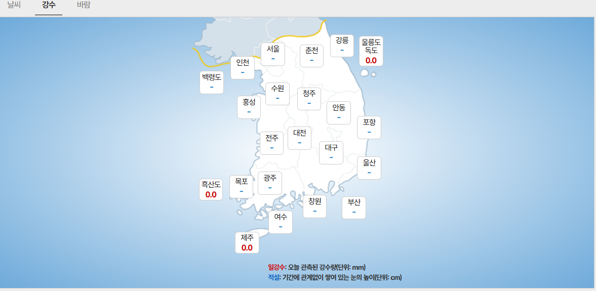 - (수도권) 서울. 인천. 경기: 1mm 안팎