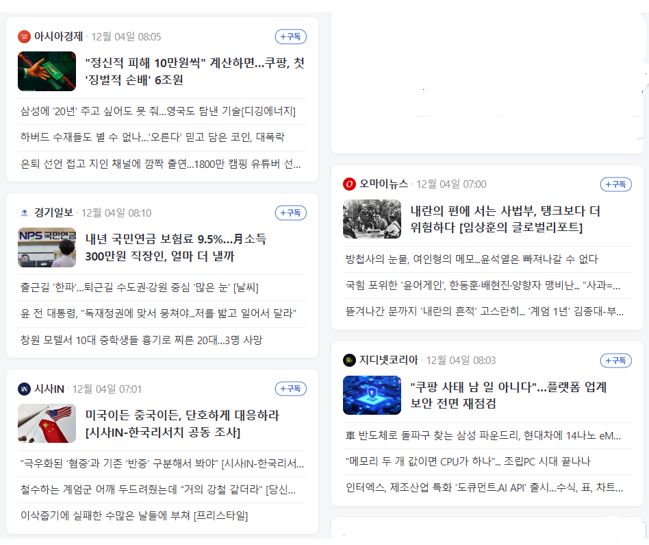 오늘 현재의 뉴스 헤드라인입니다.