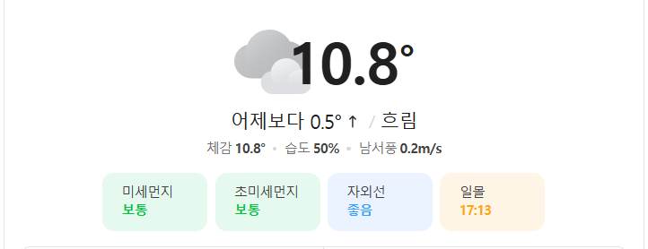 보시는 것처럼 부산의 하늘은 흐립니다. 예보도 흐림입니다. 오늘 부산의 최저기온은 3도이고, 최고기온은 13도입니다.