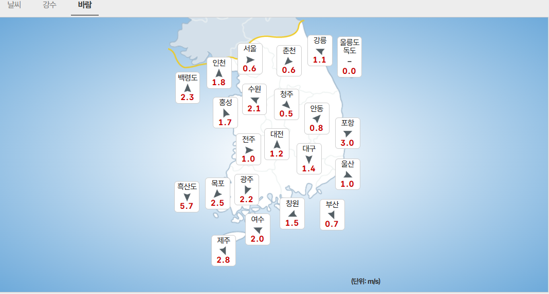 - (제주도) 제주도: 5mm 미만