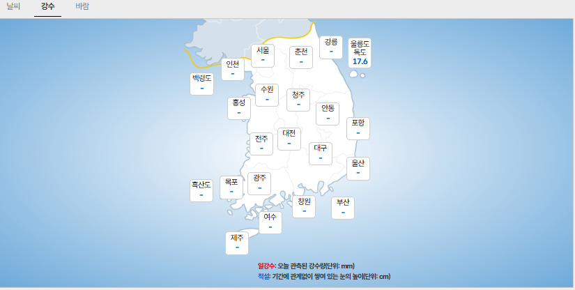 - (제주도) 제주도중산간. 산지: 1mm 미만