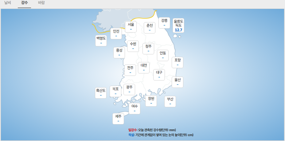 - (강원도) 강원북부내륙: 1mm 미만