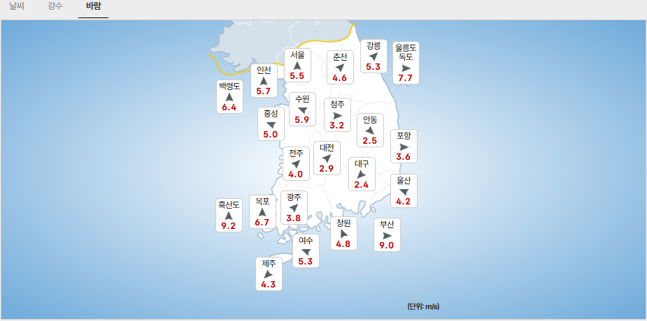 - (제주도) 제주도: 5mm 미만