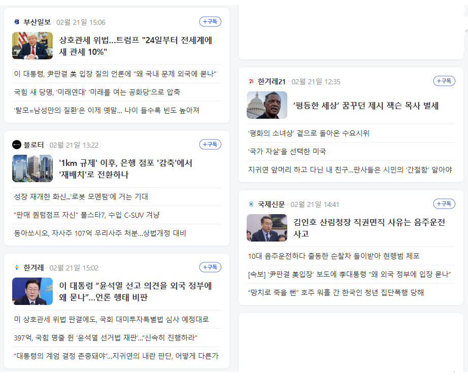 오늘 현재의 뉴스 헤드라인입니다.